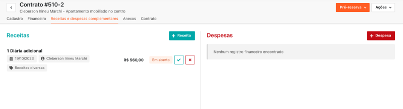 Agora é possível adicionar receitas ou despesas relacionadas com a reserva, diretamente na tela de visualização: